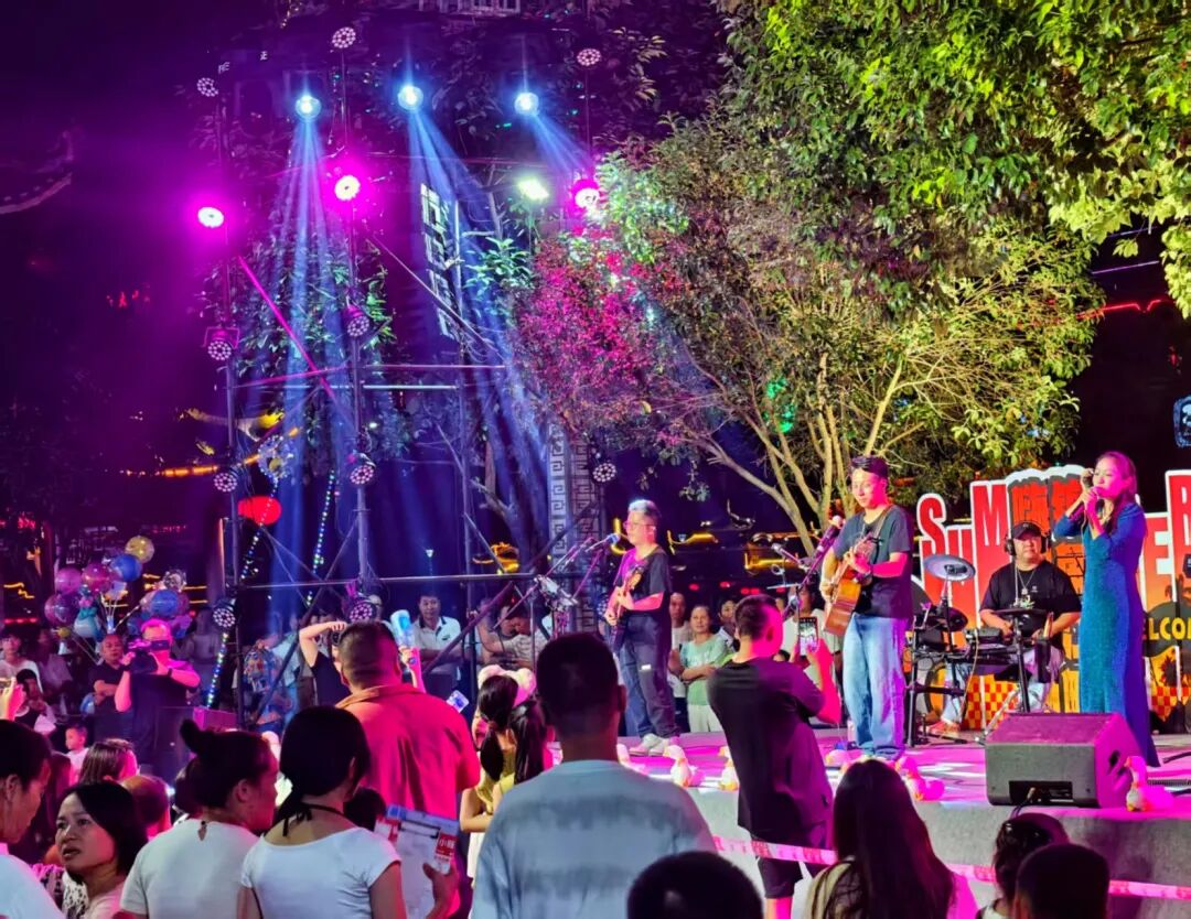 每晚20:00至22:00,“流动的音符”江边音乐会在锦屏县三江镇锦滨路夜市街燃爆杉乡夜,“音乐+美食”的组合为广大游客和市民带来美妙的视听和味觉享受,也为夜晚的锦屏增添了浪漫的氛围。
