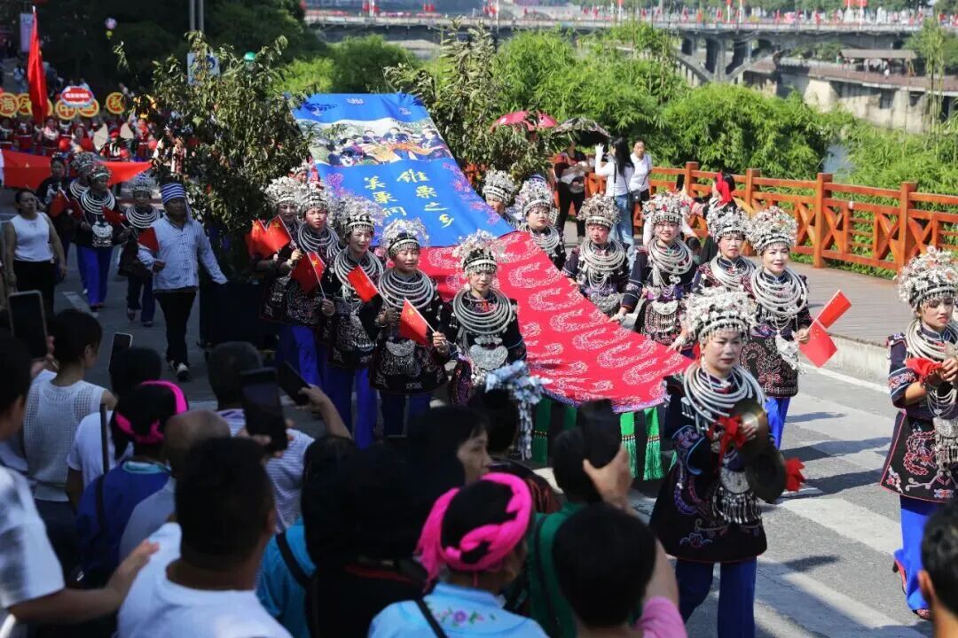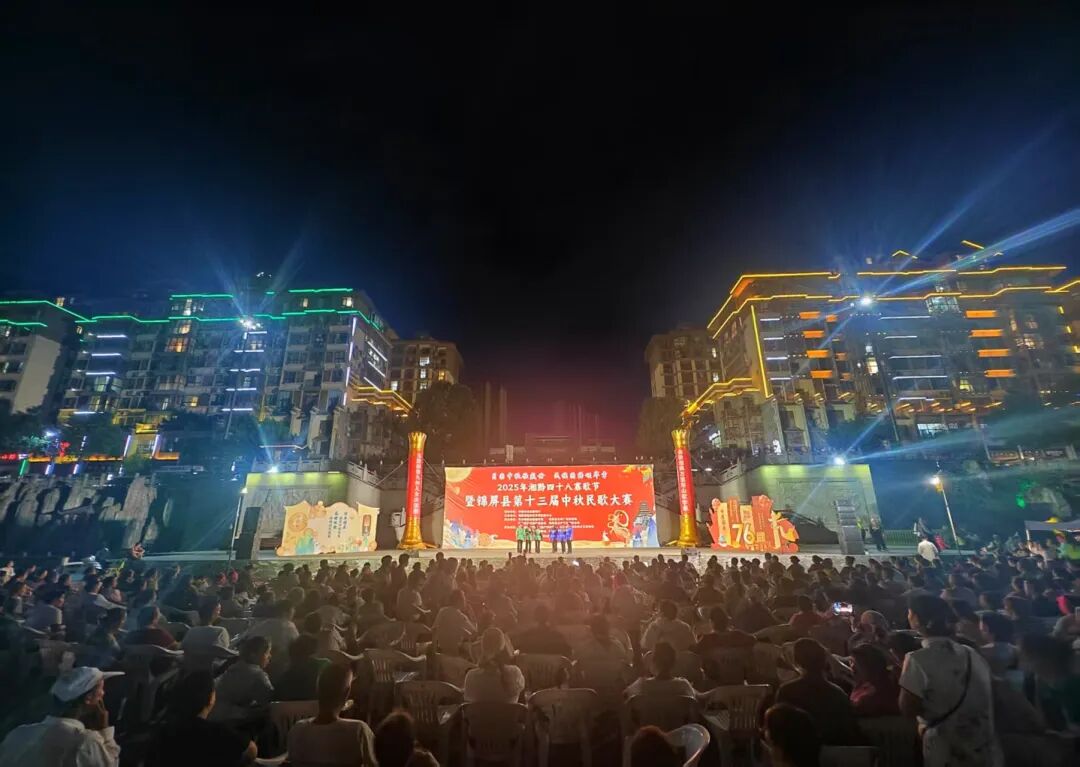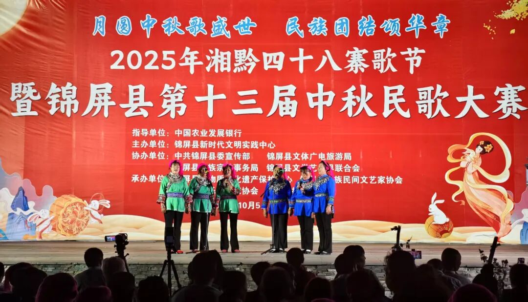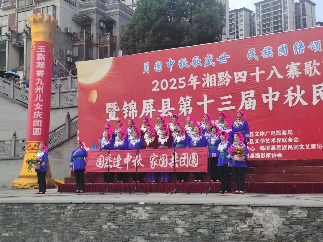 10月5-6日,2025年湘黔四十八寨歌节暨锦屏县第十三届中秋民歌大赛吸引了县内外40余支合唱队、20名独唱歌手和20对民歌组合报名参赛,这场横跨湘黔两省、承载着边界群众文化情谊的民俗盛会,以一场规模盛大的民俗游演点燃全场热情,2000余名参赛队员身着民族盛装,用歌声与舞姿,为国庆中秋佳节献上最具民族风情的祝福。大赛不仅精心设置了团队游演环节,还分设了合唱、独唱、对唱三项比赛。活动中,各民族文化交相辉映、精彩纷呈,在铸牢中华民族共同体意识中,让沉睡在典籍里的民歌“活”起来,让静止在博物馆里的文化符号“动”起来,既丰富了游客和群众的精神文化生活,也让湘黔边界的民俗文化焕发新活力。