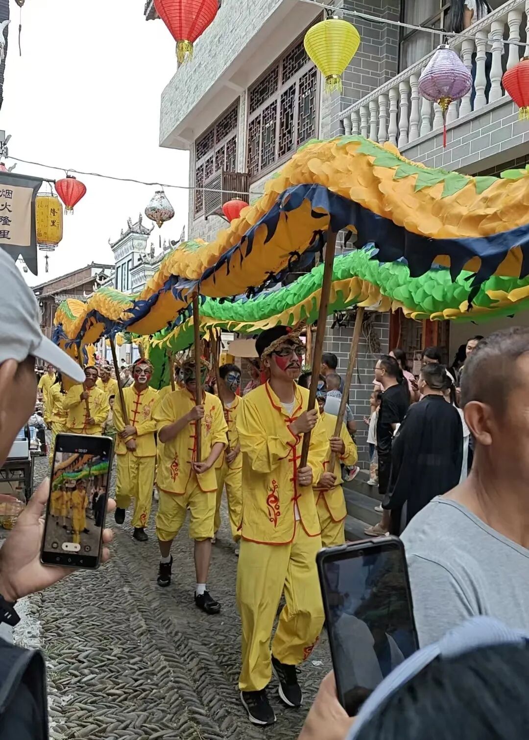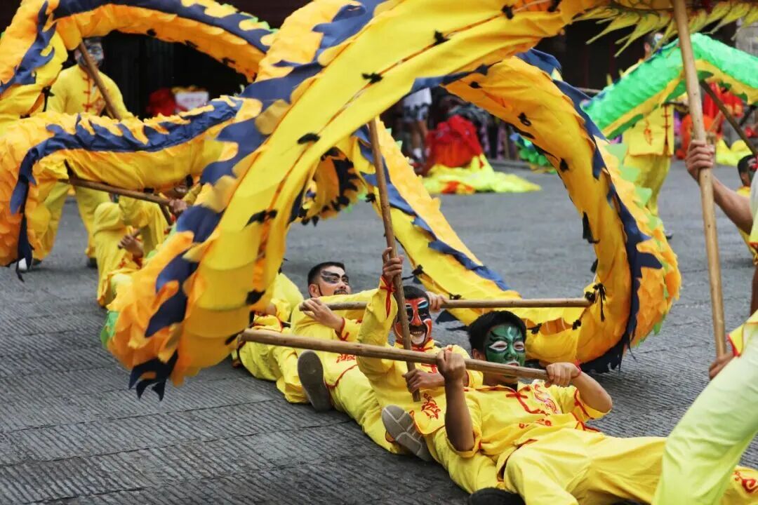 “花脸龙”作为隆里古城的文化名片,贯穿活动全程,每天多时段的花脸龙狂欢巡游,身着特色彩绘服饰的花脸龙队伍,与婚俗队伍、汉服方阵沿全城巡游,腾跃、盘旋的舞龙表演,赢得游客阵阵欢呼。同时,“新化舞狮”非遗展演也同步登场,狮子抢宝、狮子登高、狮子吐对联等绝活轮番上演,演员与游客互动,让大家近距离感受传统民俗的灵动与趣味。