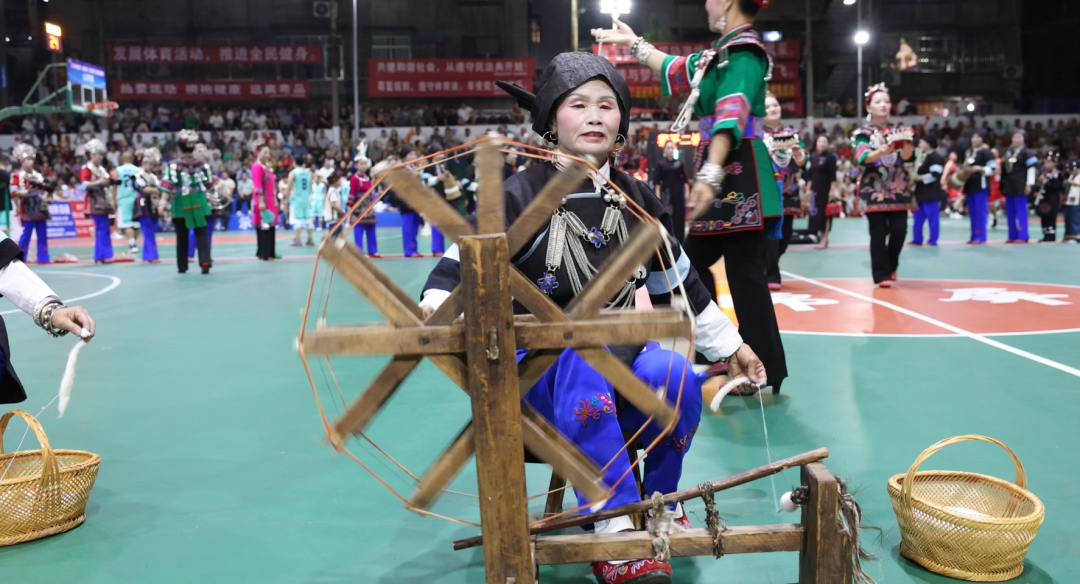 10月2日,锦屏县体委球场内欢呼声此起彼伏,2025年“全民健身·悦动锦屏”国庆县际篮球公开赛小组赛激战正酣,平秋镇“侗韵传奇”展演队携侗族非遗精品精彩亮相,让赛场活力与文化底蕴实现深度交融,以“体育搭台、非遗唱戏”的形式,让运动激情与非遗魅力实现强烈碰撞。
