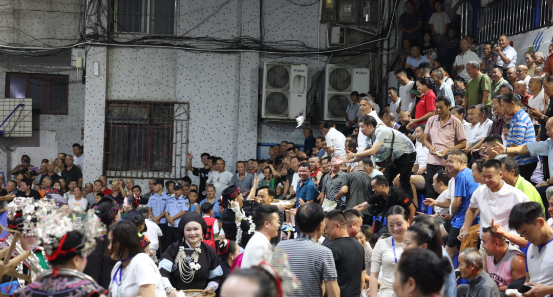 走秀落幕,展演队将糍粑、水果及特色零食与观众分享,现场欢呼声此起彼伏,让非遗在互动中更显鲜活。