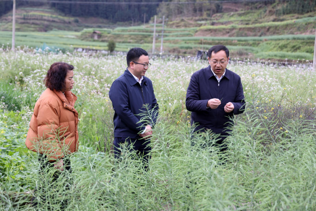 在八洋村地芽片区,唐标实地查看村容寨貌和油菜长势,详细了解产业发展、消防安全措施落实、农村人居环境整治等方面的工作进展情况。随后,唐标在八洋村委会与乡村干部、驻村工作队及村“两委”班子成员进行座谈交流,认真听取了村级发展工作情况汇报。