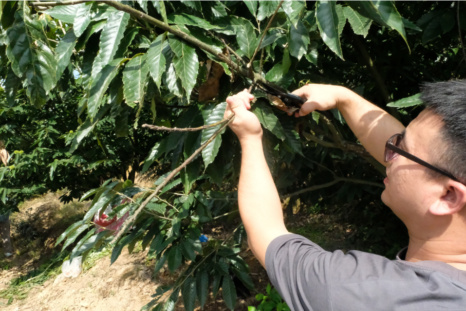 随后,朱周俊带领种植户前往锥栗种植基地开展实操教学。现场示范修剪技术,强调疏除交叉枝、病虫枝以保证树冠通风透光;针对病株,实地指导病果清理及药剂喷施操作。