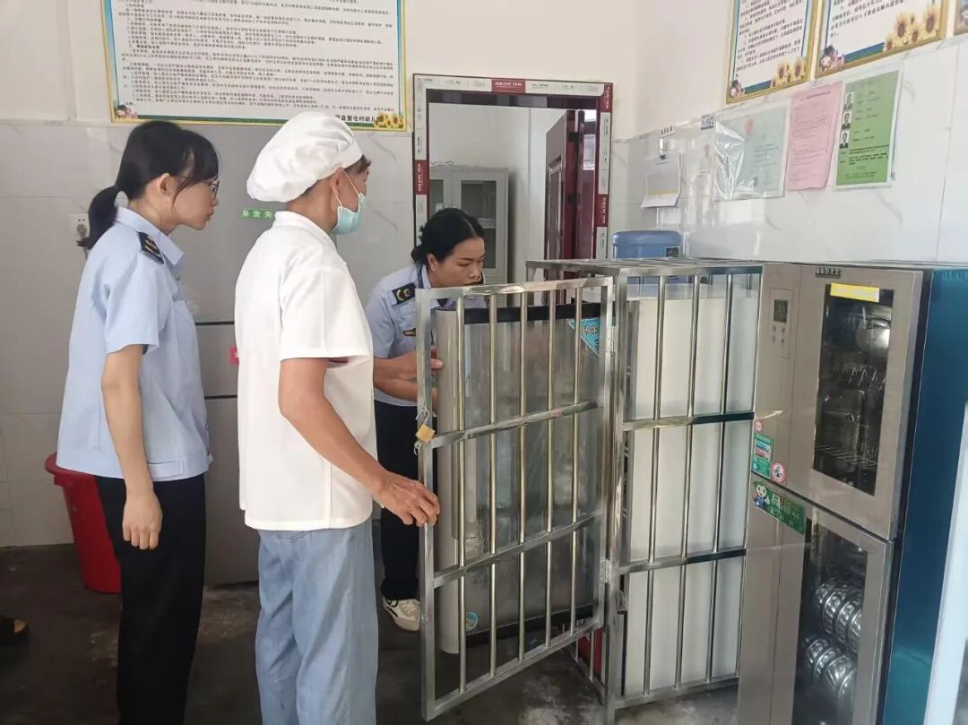 检查中,各部门各司其职又密切配合。派出所严查校园安保配备、门禁管理与周边治安,要求严格执行外来人员登记;专职消防队深入教学楼、食堂等区域,排查消防设施、疏散通道等隐患,现场指导整改;派出所与安监办联合清理占道摊贩,恢复道路通行秩序;多部门同步排查文具店、小卖部,杜绝低俗、暴力类商品;市监局深入食堂后厨核查食品溯源、餐具消毒,严查商户证照与食品保质期,守护“舌尖安全”。