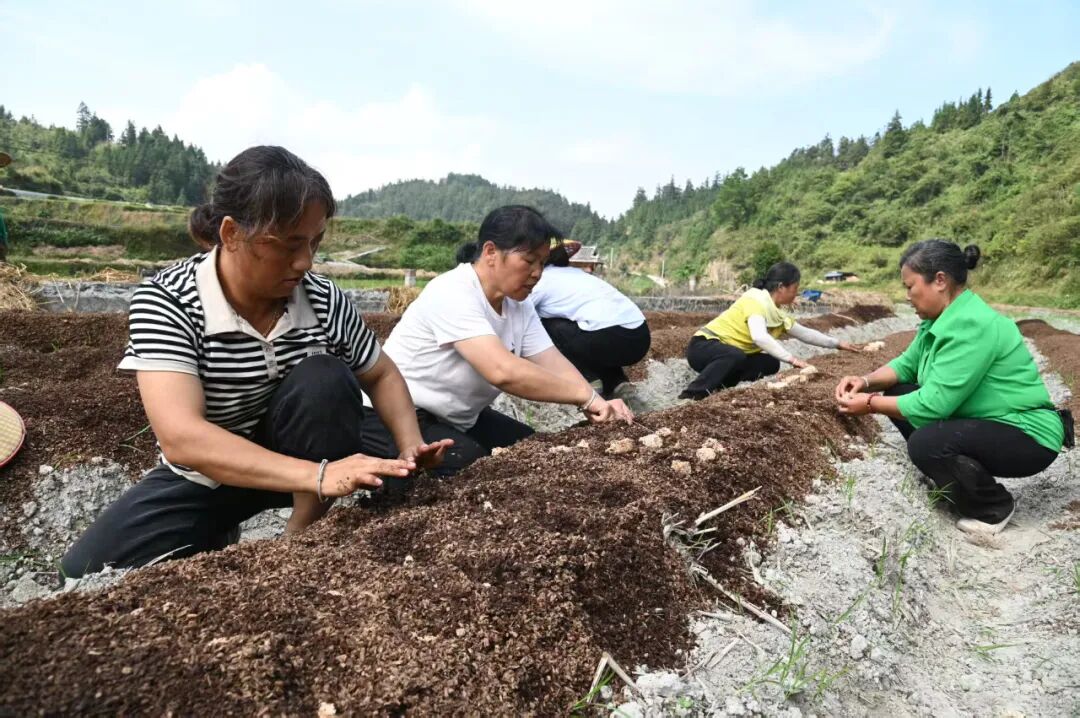 近日,锦屏县平略镇平略村田坝赤松茸种植基地里一派繁忙景象。十几名村民分工合作,娴熟地起垄、铺菌、培土、施肥,有条不紊推进菌棒种植,为乡村产业振兴添活力。