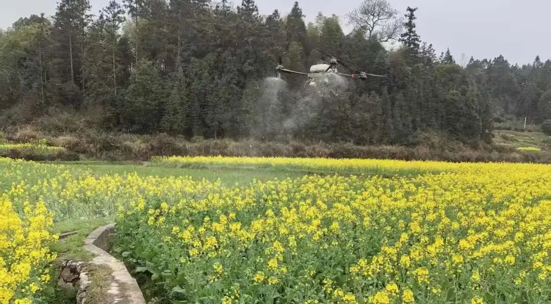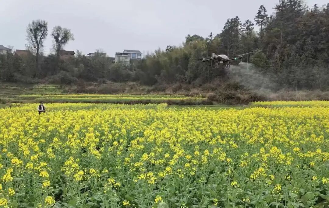 在作业现场,技术人员熟练操控无人机,按照预设航线在油菜田上空平稳飞行,将雾化农药均匀喷洒至田间。据悉,无人机作业具有高效、安全、节本增效等多重优势,其产生的下行气流有助于增加药液对作物的穿透性,提升防治效果,同时避免了人员深入田间可能造成的作物损伤,也保障了操作人员的安全。