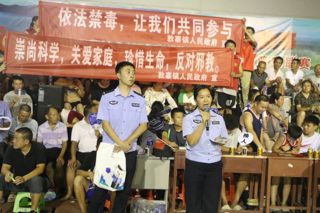 赛前,敦寨镇紧扣“和美乡村”建设,在赛场周边悬挂安全生产、法治教育等主题横幅20条,聚焦群众与青少年需求,锁定防溺水、反诈、禁毒等重点领域,为宣传打下扎实基础。