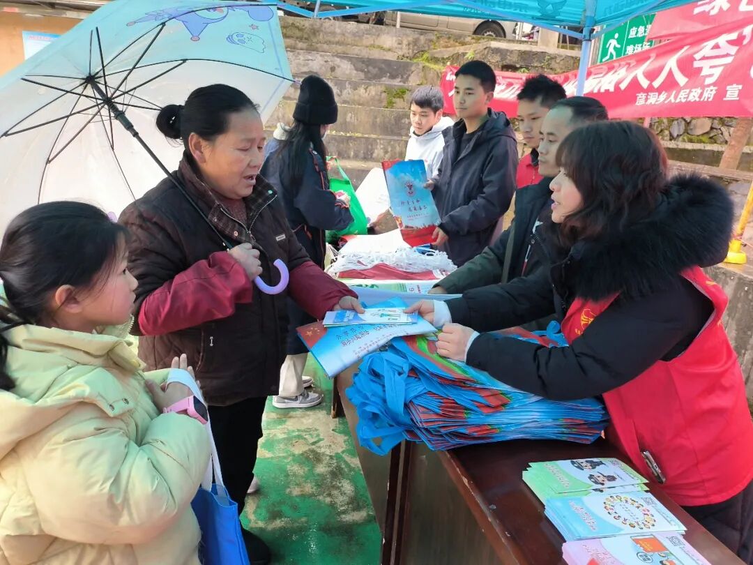活动现场热闹非凡,普法人员与乡、村工作人员协同联动,在书写派送春联、宣讲安全常识的同时,精心设立法治宣传咨询点,摆放图文并茂的宣传展板。展板以通俗语言解读《中华人民共和国民法典》核心条款,结合典型案例剖析维权要点,直观清晰、易于理解,吸引了大批过往群众驻足观看、主动交流。